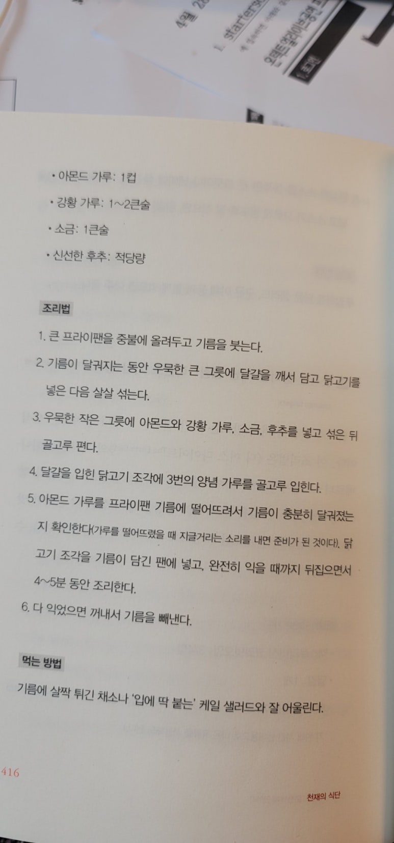 미국 책은 미국 책인가보다. 레시피나 메뉴가 한국 가정의 냉장고에서 상시대기하고 흔히 볼 수 있는 재료가 아닌 것들이 좀 있다. 그렇지만 책을 읽으니 대강의 얼개를 짜서 손쉽게 우리 마트에서 구할 수 있는 식재료로 담백하고 심심하게 메뉴를 구성하는 좋은 참고가 될 것 같다.